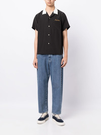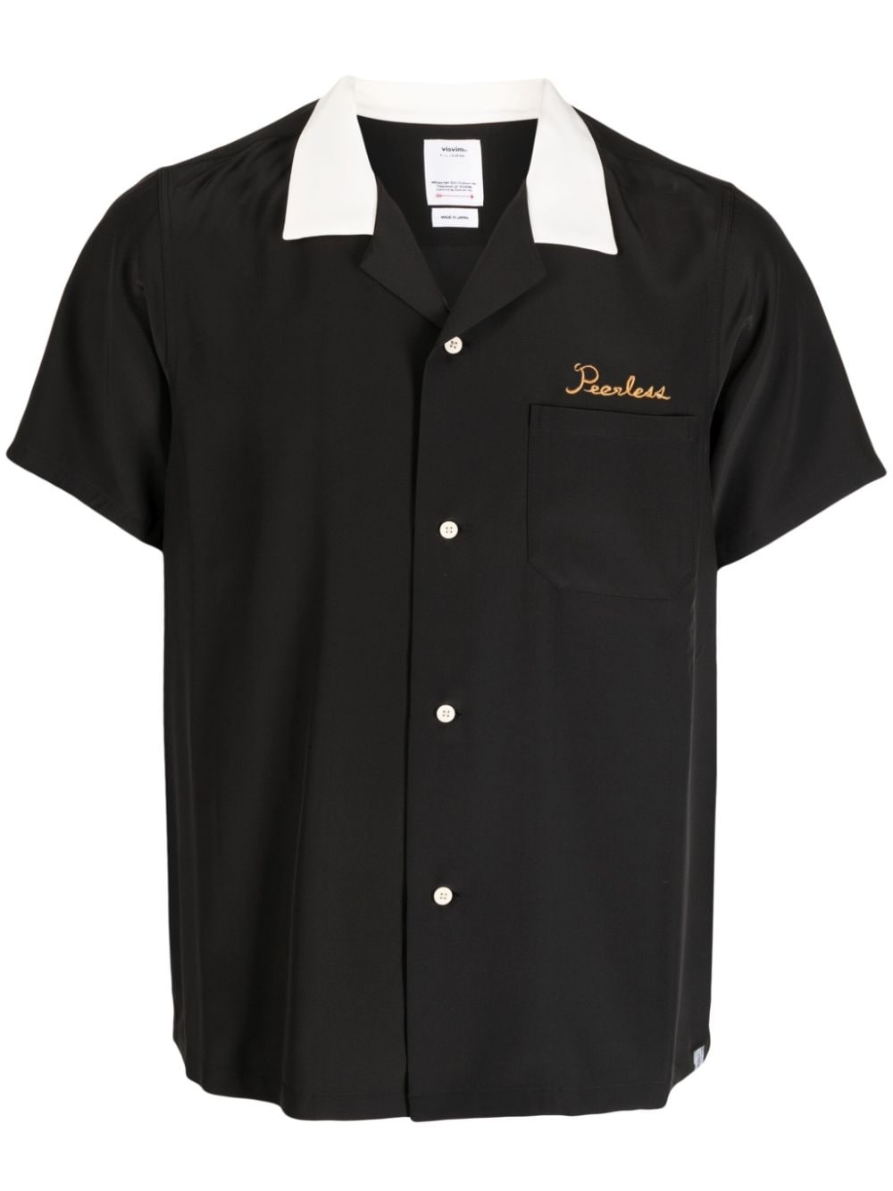 logo-embroidered silk shirt Highlights - Black/optical white - Silk - Embroidered logo at the chest - Embroidered design - Notched collar - Front button fastening - Short sleeves - Straight hem Imported Composition Silk 100% SIZE & FIT Model measurements Height 6 ft 2 in(1.87 m) Bust/Chest 31.49 in(80 cm) Hips 37.79 in(96 cm) Waist 27.95 in(71 cm) Measurement CHEST 43.3 in(110 cm) SLEEVE LENGTH 17.32 in(44 cm) Shoulder Width 16.53 in(42 cm) FittingInformation Designed for a slim fit, offering a comfortable fit that sits just away from the body Made from a lightweight non-stretch fabric This piece fits true to size – take your usual size Washing instructions Dry Clean Only