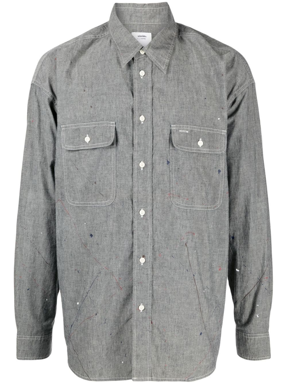 logo-print paint-splatter shirt Highlights - Medium grey - Cotton-silk blend - Melange effect - Paint splatter detail - Logo print to the rear - Classic collar - Front button fastening - Long sleeves - Buttoned cuffs - Two button-fastening chest pockets - Curved hem Imported Composition Body: Cotton 90%, Silk 10% SIZE & FIT Model measurements Height 6 ft 2 in(1.88 m) Bust/Chest 31.88 in(81 cm) Hips 35.82 in(91 cm) Waist 27.55 in(70 cm) FittingInformation Designed for a regular fit, allowing for a comfortably loose fit throughout the body Made from a midweight non-stretch fabric This piece fits true to size – take your usual size