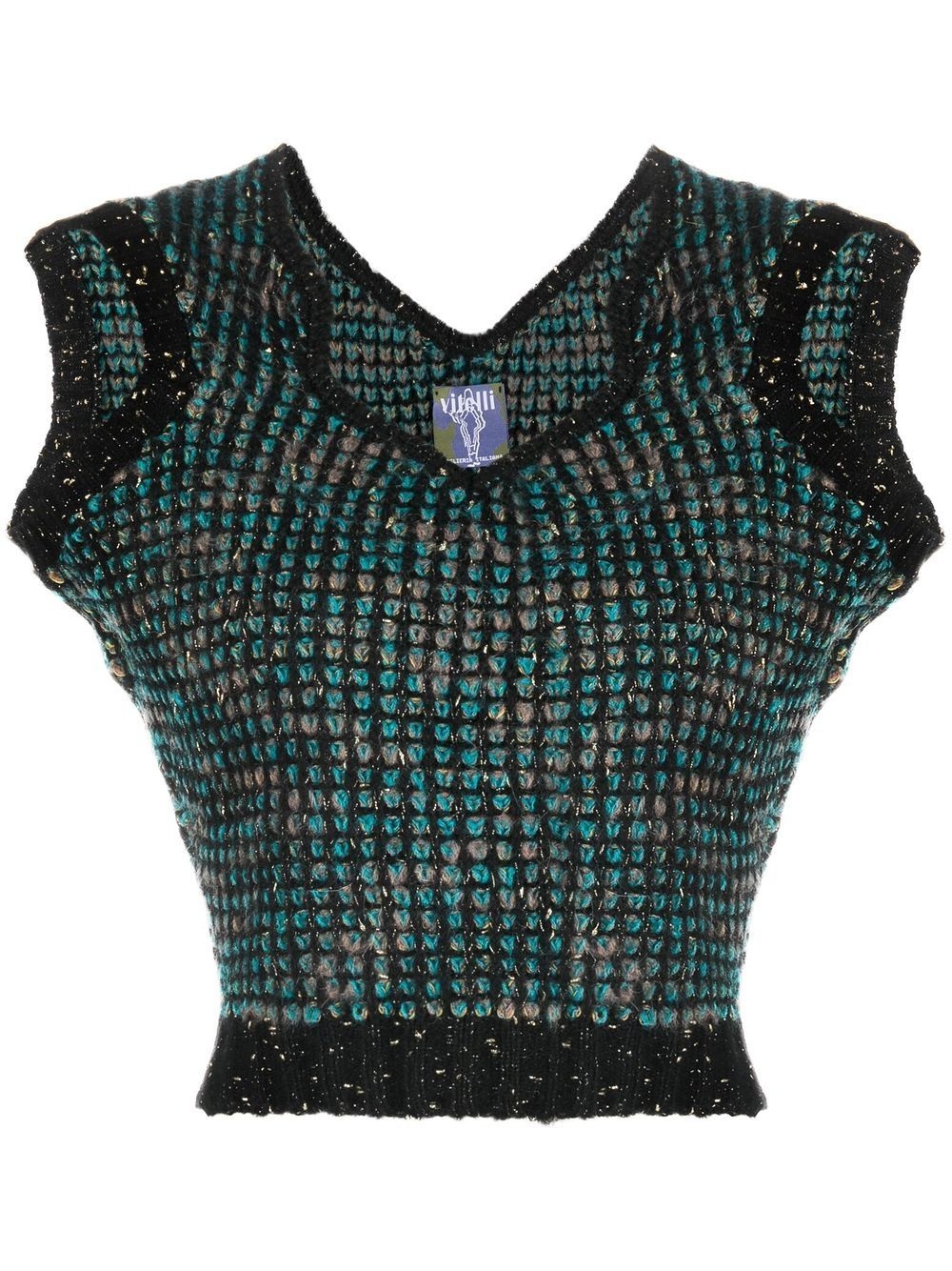 melange V-neck knit top grey/blue wool/cashmere/mohair/cotton metallic threading melange effect V-neck sleeveless Made in Italy Composition Metallic Fibre 100%, Wool 100%, Cashmere 100%, Mohair 100%, Viscose 100%, Polyamide 100%, Cotton 100% SIZE & FIT Model measurements Height 5 ft 11 in(1.8 m) Bust/Chest 33.07 in(84 cm) Hips 37.4 in(95 cm) Waist 25.19 in(64 cm) FittingInformation This piece fits true to size. We recommend you get your regular size Cut for a slim fit Made with a mid-weight fabric Washing instructions Hand Wash