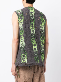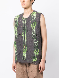 open-knit distressed zipped waistcoat Highlights - Charcoal grey - Neon green - Distressed effect - Round neck - Sleeveless - Front zip fastening Made in Italy Composition Wool 80%, Nylon 10%, Acrylic 10% SIZE & FIT Model measurements Height 6 ft 2 in(1.87 m) Bust/Chest 34.25 in(87 cm) Hips 36.22 in(92 cm) Waist 29.52 in(75 cm)