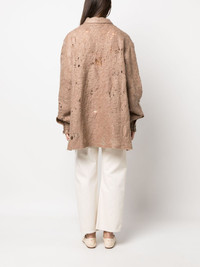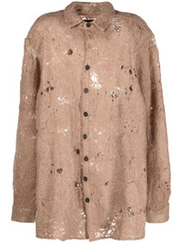 raw-cut finish long-sleeve shirt Highlights - Ecru - Wool blend - Raw-cut finish - Distressed effect - Classic collar - Front button fastening - Long sleeves - Buttoned cuffs - Side slits - Straight hem Made in Italy Composition Wool 80%, Acrylic 10%, Polyamide 10% SIZE & FIT Model measurements Height 5 ft 11 in(1.8 m) Bust/Chest 31.49 in(80 cm) Hips 36.22 in(92 cm) Waist 25.59 in(65 cm) FittingInformation Designed to be unstructured, offering a loose fit throughout