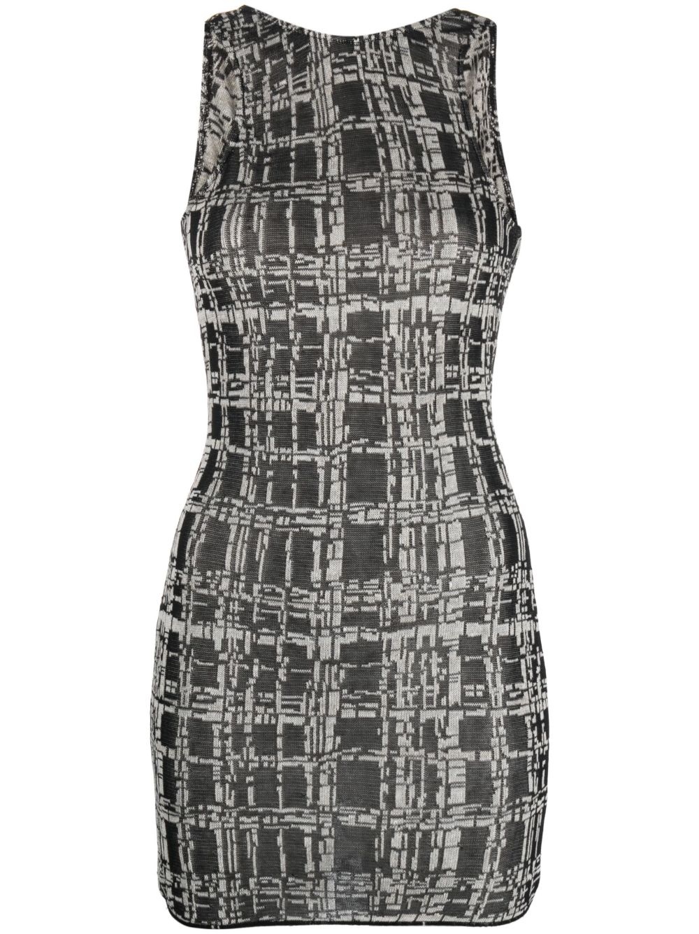 sleeveless knitted minidress Highlights - Black/ivory white - Cotton blend - Knitted construction - Abstract pattern print - Round neck - Scoop back - Sleeveless - Thigh-length - Straight hem Made in Italy Composition Cotton 50%, Linen/Flax 35%, Recycled Nylon 10%, Polyamide 5% SIZE & FIT Model measurements Height 5 ft 11 in(1.8 m) Bust/Chest 31.49 in(80 cm) Hips 36.22 in(92 cm) Waist 25.59 in(65 cm) FittingInformation Designed for a close fit throughout Made with a midweight knit, this piece offers some stretch