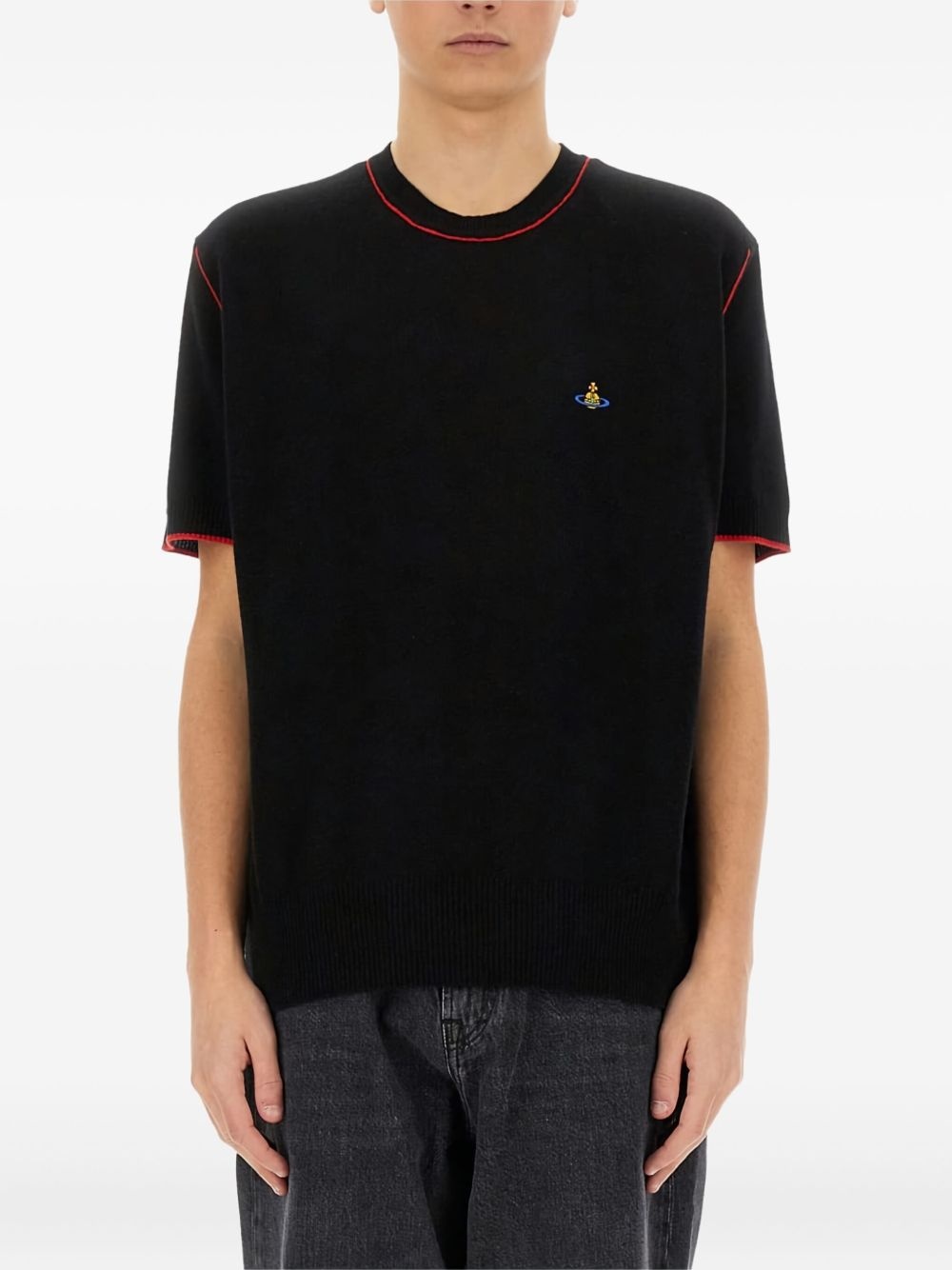 Alex contrast-stitched short-sleeves T-shirt Highlights - Black - Contrast stitching - Embroidered orb logo - Round neckline - Short sleeves Made in Italy Composition Merino 90%, Cashmere 10% SIZE & FIT FittingInformation Designed to be unstructured, offering a loose fit throughout Made with a lightweight knit, this piece offers some stretch Washing instructions Read Manufacturer Guidelines
