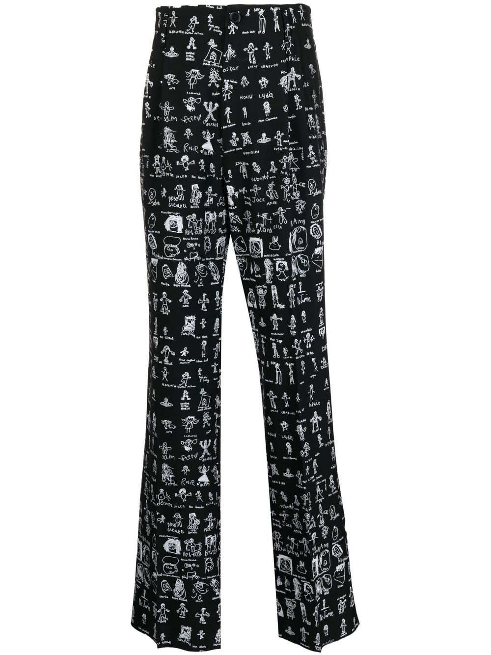 all-over graphic print trousers Highlights - Black/white - Virgin wool - All-over graphic print - Concealed fly and button fastening - Belt loops - Two side slit pockets - Two rear welt pockets - Straight leg - Tailored cut Made in Italy Composition Virgin Wool 100% SIZE & FIT Model measurements Height 6 ft 2 in(1.87 m) Bust/Chest 36.22 in(92 cm) Hips 37.79 in(96 cm) Waist 28.34 in(72 cm) FittingInformation This piece fits true to size. We recommend you get your regular size Designed for a slim fit at the waist and loose over the leg Made with a mid-weight non-stretch fabric Washing instructions Dry Clean Only