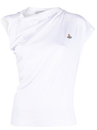 Hebo asymmetric T-shirt Vivienne Westwood presents its unique take on a casual staple with this Hebo asymmetric gathered T-shirt. Made from organic cotton, this crew-neck top takes laid-back dressing to the next level. Highlights - White - Organic cotton - Asymmetric design - Gathered detailing - Embroidered logo at the chest - Boat neck - Short sleeves - Straight hem Imported Composition Organic Cotton 100% SIZE & FIT Model measurements Height 5 ft 11 in(1.8 m) Bust/Chest 35.03 in(89 cm) Hips 35.03 in(89 cm) Waist 23.62 in(60 cm) Measurement LENGTH 22.04 in(56 cm) BUST 38.58 in(98 cm) FittingInformation Designed for a slim fit that sits just away from the body offering a close yet comfortable fit Made from a midweight non-stretch fabric, this piece offers minimal elasticity when worn Washing instructions Machine Wash