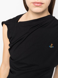 asymmetric draped T-shirt Vivienne Westwood's unique sense of style is showcased in this T-shirt, constructed in a draped asymmetric design. The signature Orb embroidery offers an instantly recognisable look to the garment. Highlights - Black - Cotton - Asymmetric design - Draped design - Signature orb logo embroidery - Single short sleeve - Straight hem Imported Composition Cotton 100% SIZE & FIT Model measurements Height 5 ft 11 in(1.8 m) Bust/Chest 31.49 in(80 cm) Hips 36.22 in(92 cm) Waist 25.59 in(65 cm) Measurement LENGTH 22.04 in(56 cm) BUST 37 in(94 cm) Shoulder Width 17.71 in(45 cm) FittingInformation This piece fits true to size. We recommend you get your regular size Cut for a slim fit Made with a mid-weight fabric Washing instructions Machine Wash