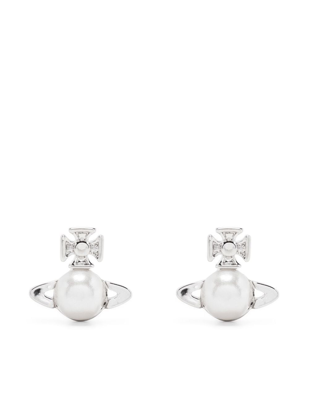 Balbina stud earrings Highlights - Silver-tone - Brass - Signature orb logo embroidery - Pearl detailing - Butterfly fastening - These earrings come as a pair. Imported SIZE & FIT Model measurements Height 5 ft 10 in(1.78 m) Bust/Chest 33.07 in(84 cm) Hips 36.61 in(93 cm) Waist 24.8 in(63 cm) Measurement HEIGHT 0.39 in(1 cm) Weight (single earring) 1 g(1 g) WIDTH 0.39 in(1 cm)