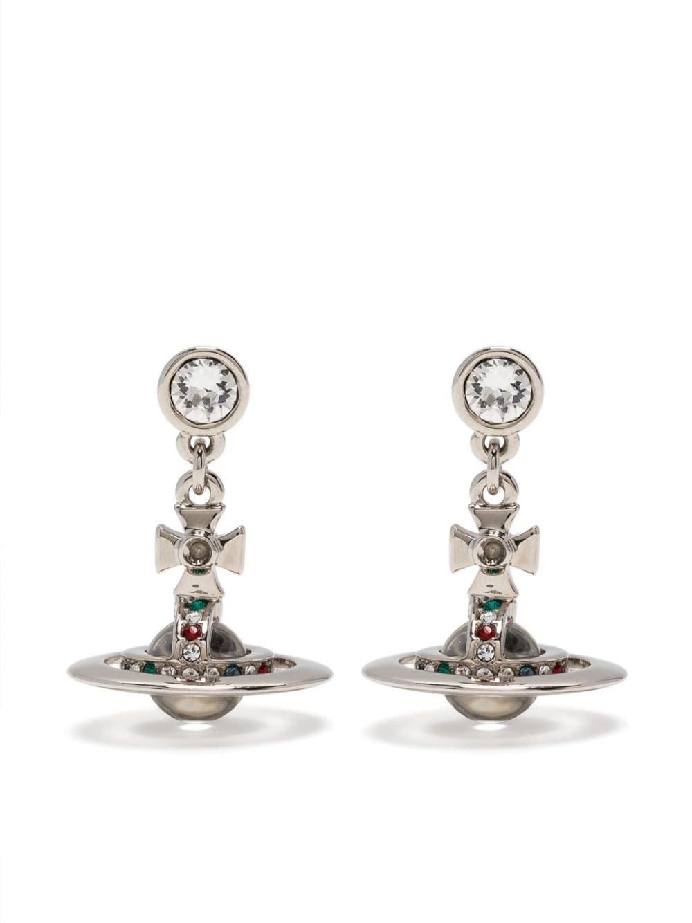 Bas Relief drop earrings Highlights - Silver-tone - Brass - Signature orb plaque detail - Crystal embellishment - Post-back fastening - For pierced ears - These earrings come as a pair. Made in Italy SIZE & FIT Measurement HEIGHT 0.78 in(2 cm) Weight (single earring) 2.7 g(2.7 g) WIDTH 0.7 in(1.8 cm)