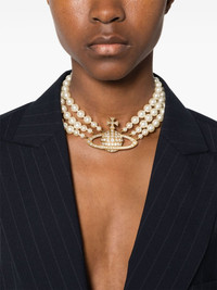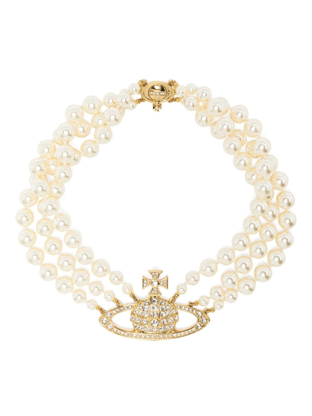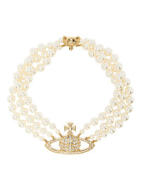 Bas Relief three-row choker necklace Highlights - Gold-tone - Brass - Three-row design - Faux-pearl detailing - Crystal embellished signature orb motif - Clasp fastening Imported SIZE & FIT Model measurements Height 5 ft 8 in(1.73 m) Bust/Chest 29.92 in(76 cm) Hips 33.07 in(84 cm) Waist 23.22 in(59 cm) Measurement Length when open 14.56 in(37 cm) PENDANT LENGTH 1.65 in(4.2 cm) PENDANT WIDTH 2.44 in(6.2 cm) WIDTH 1.06 in(2.7 cm)