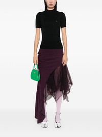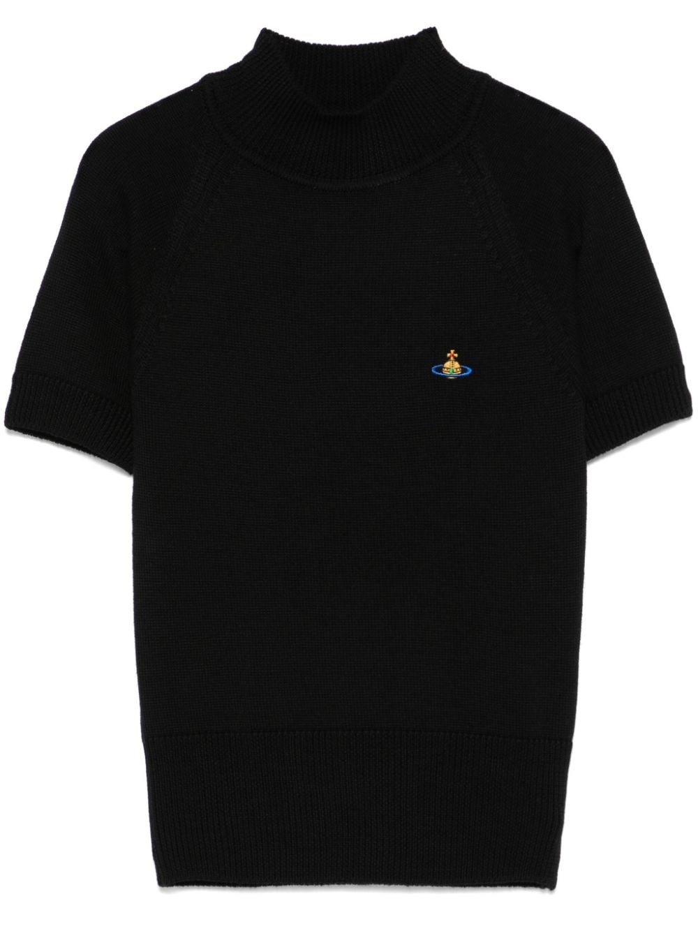Bea mock-neck top Highlights - Black - Virgin wool - Fine ribbed - Ribbed trim - Mock neck - Short raglan sleeves - Signature orb logo embroidery - Straight hem Made in Italy Composition Virgin Wool 100% SIZE & FIT Model measurements Height 5 ft 10 in(1.78 m) Bust/Chest 33.46 in(85 cm) Hips 36.22 in(92 cm) Waist 23.22 in(59 cm) FittingInformation Designed for a close fit throughout Made with a midweight knit, this piece offers some stretch
