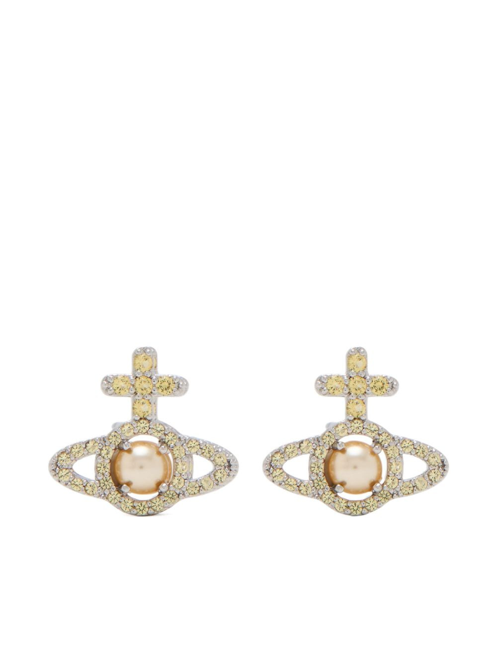Olympia Pearl earrings Highlights - Silver and gold-tone - Brass - Cluster-stud design - Pearl detail - Butterfly clasp fastening - For pierced ears - These earrings come as a pair. - Normal everyday use and external agents may reduce the lustre of gemstones and gold surfaces. to maintain, use specific, non-abrasive products specially meant for cleaning jewellery. Made in Italy SIZE & FIT Measurement DIAMETER 0.98 in(2.5 cm) HEIGHT 0.55 in(1.4 cm)