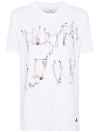 Bones 'n chain cotton T-shirt Highlights - White - Cotton - Soft jersey - Round neck - Short sleeves - Bones 'n chain print to the front - Signature orb logo embroidery - Straight hem - Pull-on style Imported Composition Cotton 100% SIZE & FIT Model measurements Height 5 ft 9 in(1.76 m) Bust/Chest 31.1 in(79 cm) Hips 36.61 in(93 cm) Waist 24.8 in(63 cm) FittingInformation Designed for a relaxed fit, this piece allows for comfort and movement when worn Made from a midweight non-stretch fabric, this piece offers minimal elasticity when worn This piece fits true to size – take your usual size Washing instructions Machine Wash