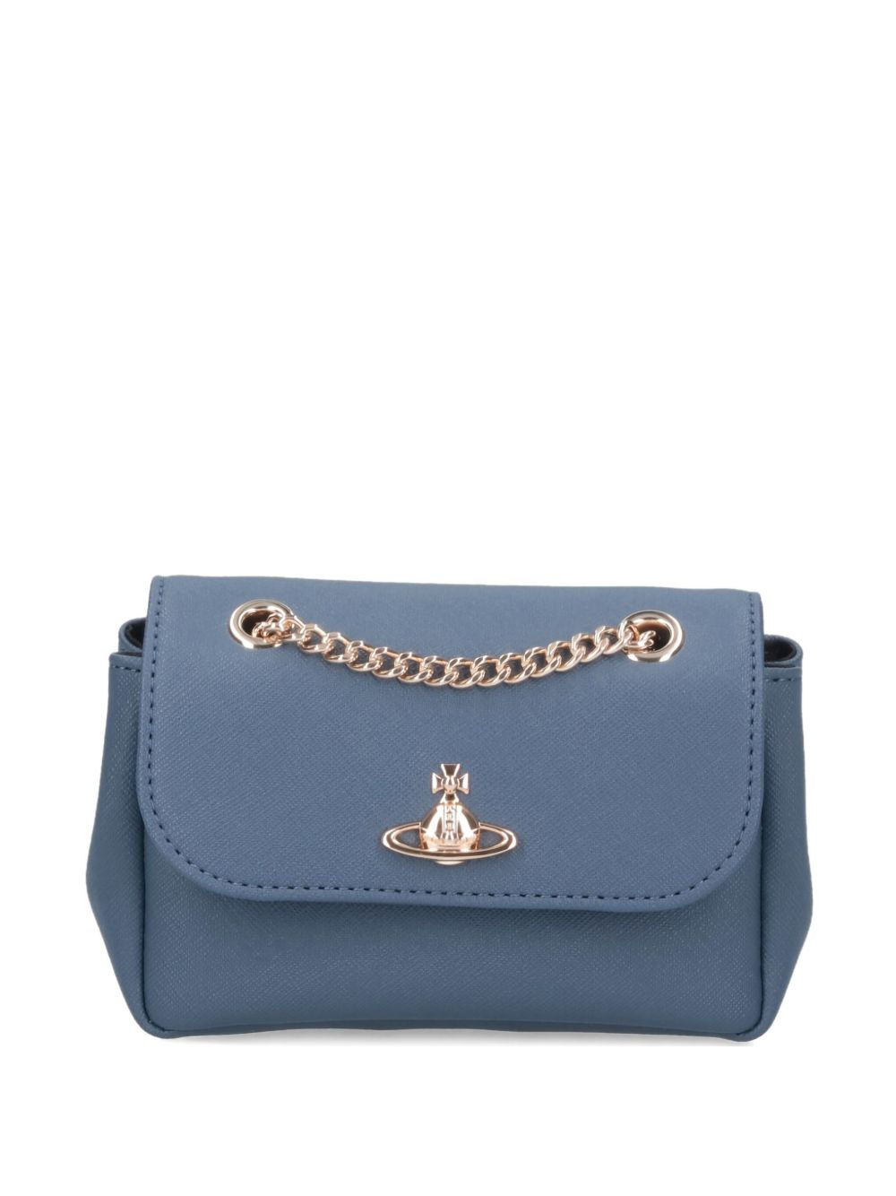 chain-strap flap shoulder bag Highlights - Blue - Gold-tone orb emblem - Chain strap - Flap closure Imported Composition Outer: Polyurethane 65%, Cotton 35% SIZE & FIT Measurement DEPTH 1.96 in(5 cm) HEIGHT 4.13 in(10.5 cm) WIDTH 5.51 in(14 cm)
