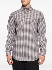 checked embroidered-orb shirt