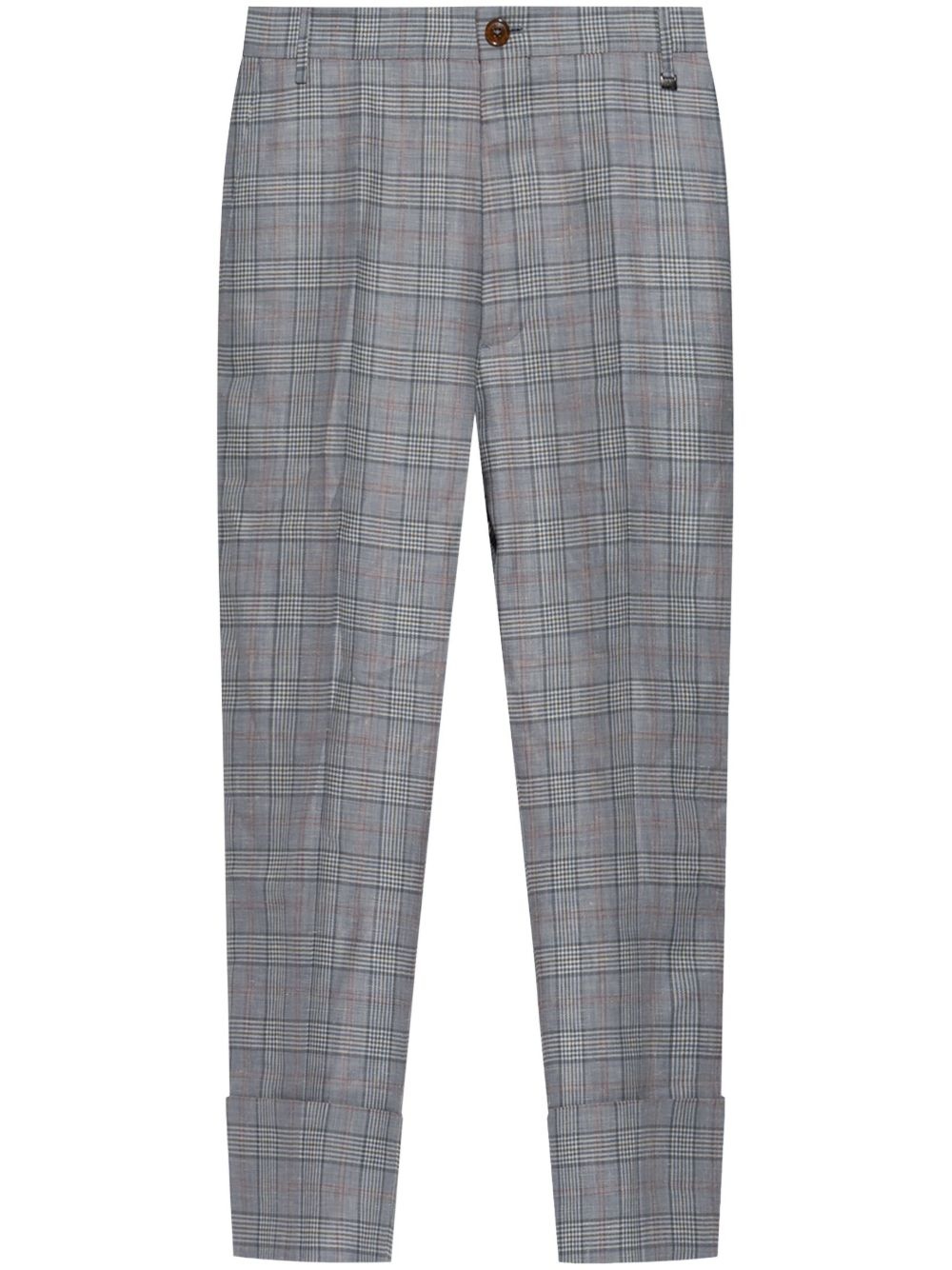checked trousers Highlights - Grey - Check pattern - Front button fastening Made in Italy Composition Linen/Flax 50%, Wool 50%