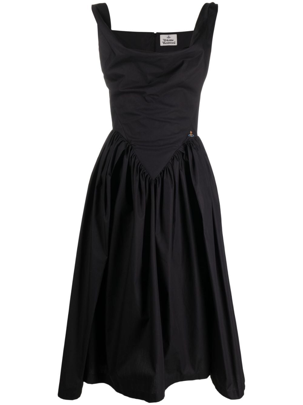 cowl-neck corset dress Vivienne Westwood explores couture design signatures in this midi dress. Cut from cotton sateen with a slight lustre, it sweeps in at the waist with a corset-inspired bodice before kicking out to a gently gathered skirt. It's finished by way of an asymmetric cowl neck. Highlights - Black - Cotton - Cowl neck - Corset style - Sleeveless - Flared skirt - Mid-length Made in Italy Composition Cotton 100% SIZE & FIT Model measurements Height 5 ft 10 in(1.77 m) Bust/Chest 30.31 in(77 cm) Hips 34.25 in(87 cm) Waist 22.83 in(58 cm) FittingInformation Designed for a close fit at the chest and waist with a loose fit at the hip Made from a midweight non-stretch fabric This piece fits true to size – take your usual size Washing instructions Machine Wash