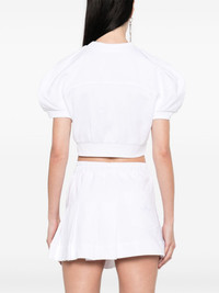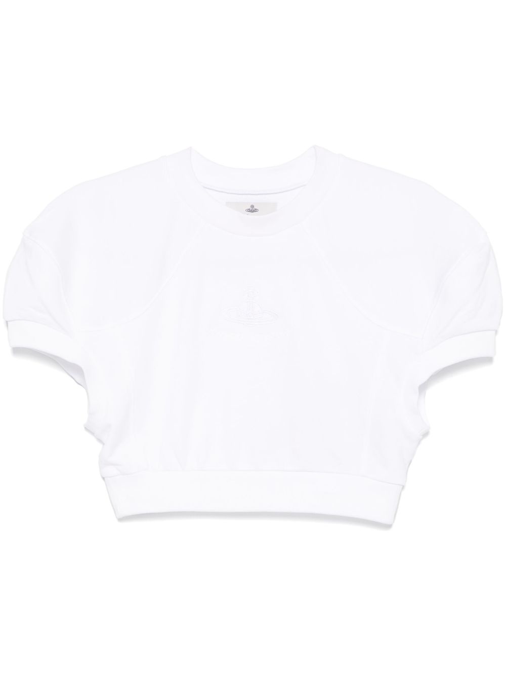 cropped football T-shirt Highlights - White - Crew neck - Short sleeves - Ribbed hem - Signature orb logo embroidery Imported Composition Organic Cotton 100%, Cotton 98%, Elastane 2% SIZE & FIT Model measurements Height 5 ft 10 in(1.78 m) Bust/Chest 33.46 in(85 cm) Hips 36.22 in(92 cm) Waist 23.22 in(59 cm) FittingInformation Designed for a relaxed fit, this piece allows for comfort and movement when worn Made from a midweight non-stretch fabric, this piece offers minimal elasticity when worn Washing instructions Machine Wash