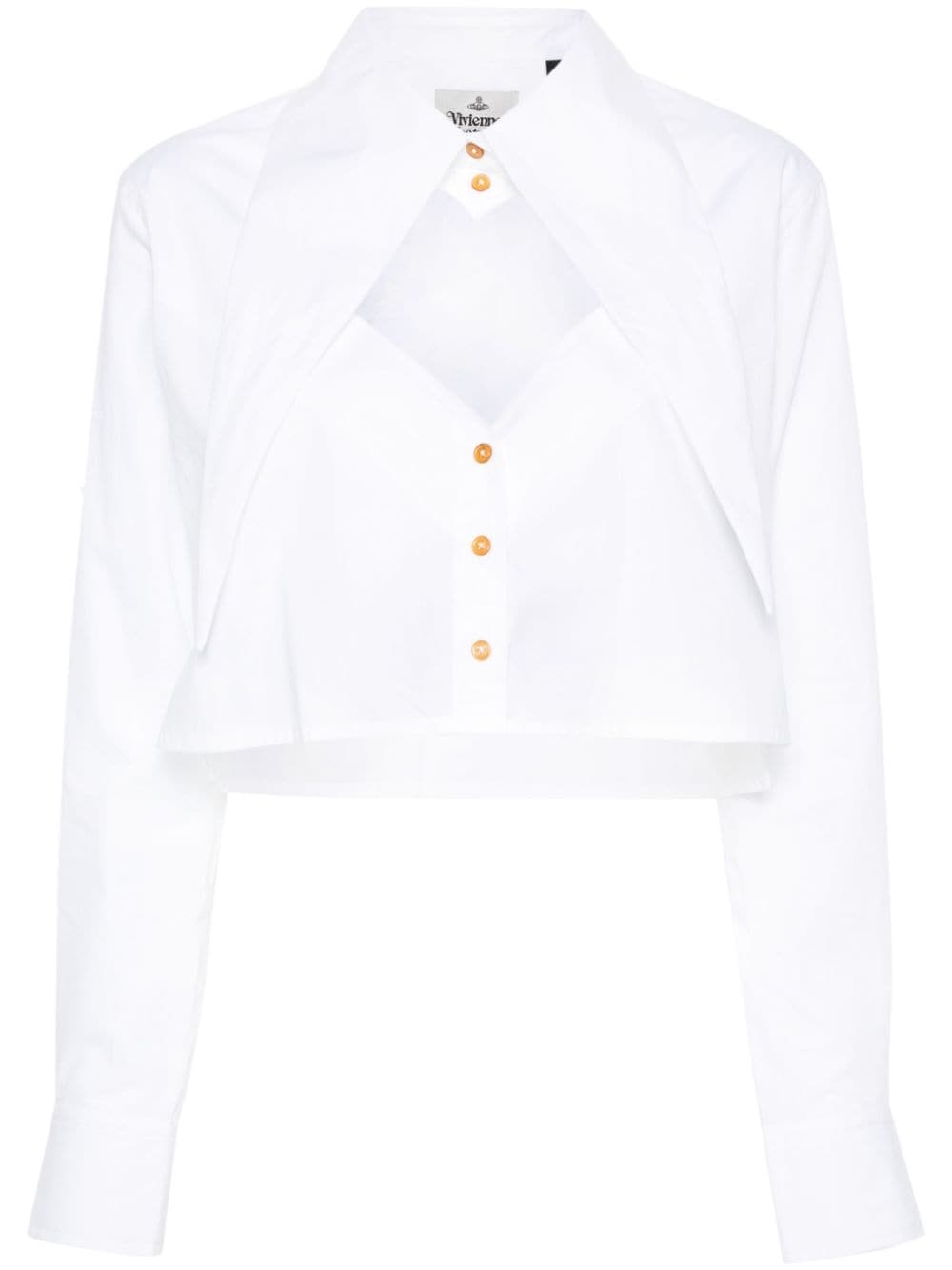 Cut-off Heart cropped shirt Highlights - White - Cotton - Poplin texture - Heart-shaped cut-out - Pussy-bow collar - Long sleeves - Buttoned cuffs - Signature orb logo embroidery - Straight hem - Cropped - Front button fastening Imported Composition Regenerative Cotton 100% SIZE & FIT Model measurements Height 5 ft 9 in(1.75 m) Bust/Chest 31.88 in(81 cm) Hips 34.64 in(88 cm) Waist 24.01 in(61 cm) FittingInformation Designed for a boxy fit, intended for a loose fit throughout Cropped in length Made from a midweight non-stretch fabric This piece fits true to size – take your usual size Washing instructions Machine Wash