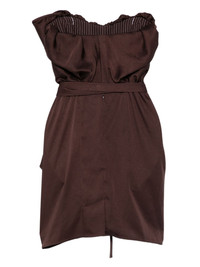 draped-waist mini dress Highlights - Chocolate brown - Strapless neckline - Draped bodice - Self-tie waist belt - Asymmetrical hem - Mini length Made in Italy Composition Polyester 100% SIZE & FIT Model measurements Height 5 ft 9 in(1.75 m) Bust/Chest 34.64 in(88 cm) Hips 36.61 in(93 cm) Waist 26.37 in(67 cm) Washing instructions Read Manufacturer Guidelines