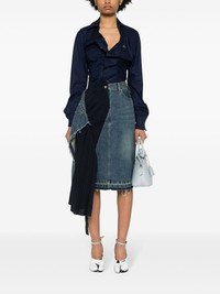 Drunken denim shirt Highlights - Navy blue - Organic cotton - Spread collar - Signature orb logo embroidery - Draped detailing - Long sleeves - Buttoned cuffs - Asymmetric hem - Front button placket Imported Composition Organic Cotton 100% Washing instructions Machine Wash
