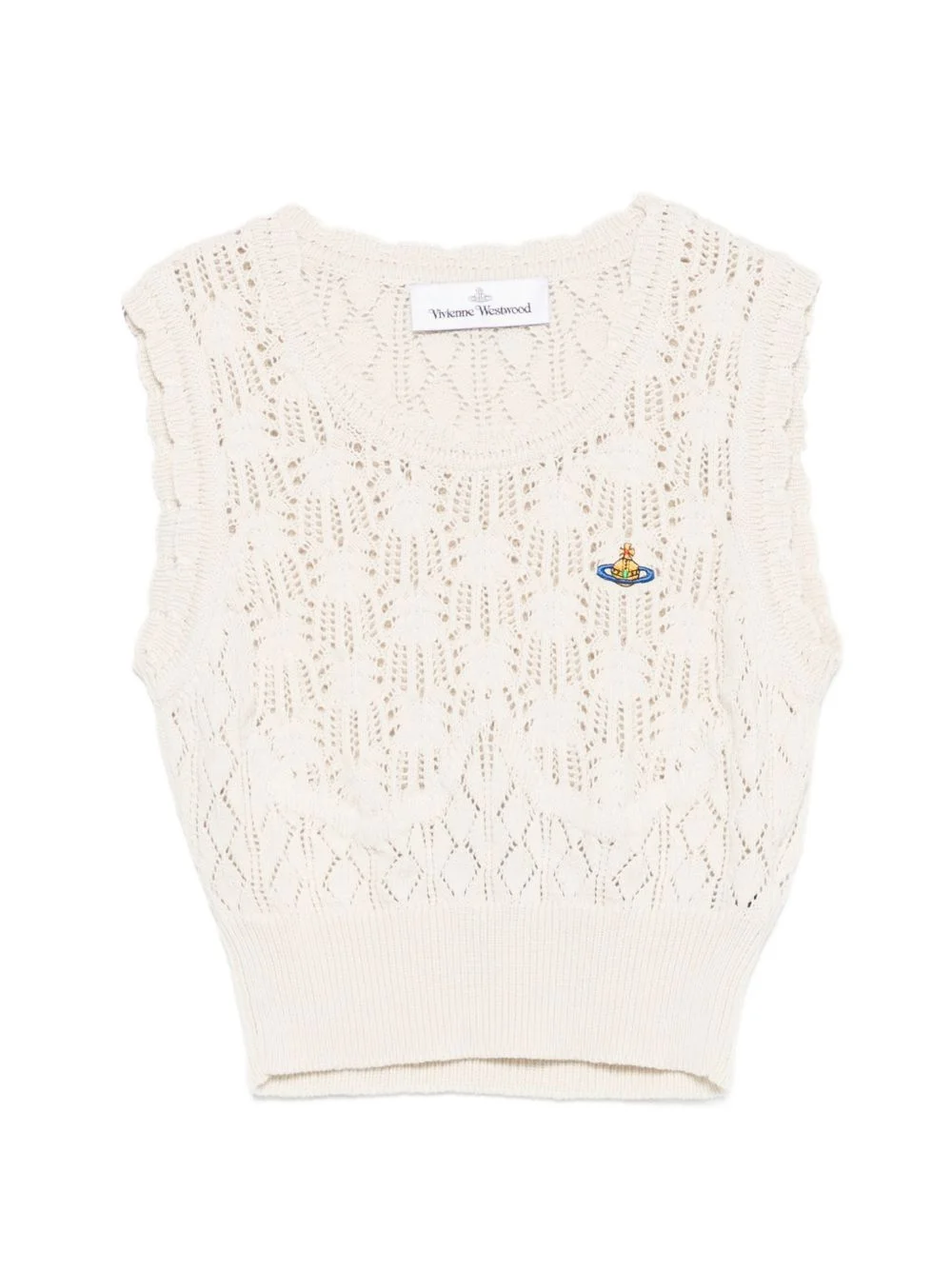 Ella openwork vest Highlights - Cream beige - Openwork knit - Logo applique - Round neck - Ribbed hem - Sleeveless Made in Italy Composition Organic Cotton 100% Washing instructions Hand Wash