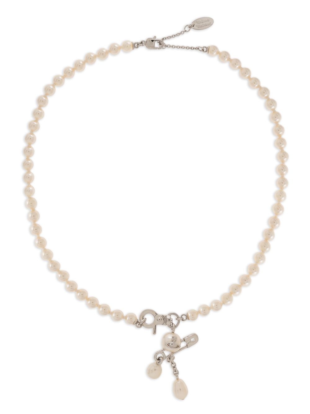 faux-pearl necklace Highlights - Silver-tone - Lobster claw fastening - Safety pin detail - Signature orb plaque detail Imported SIZE & FIT Measurement Length when open 17.32 in(44 cm) PENDANT LENGTH 1.77 in(4.5 cm) PENDANT WIDTH 0.98 in(2.5 cm)