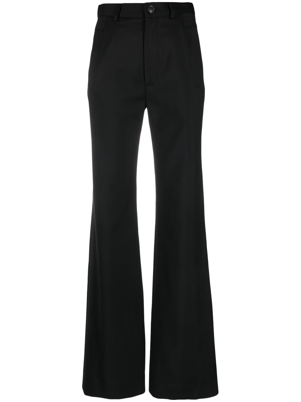 flared tailored trousers Highlights - Black - Virgin wool/cotton - Flared design - Belt loops - High-waisted - Front button fastening - Two diagonal pockets to the sides - Rear button-fastening jetted pocket Made in Italy Composition Outer: Virgin Wool 100% Lining: Cotton 100% SIZE & FIT Model measurements Height 5 ft 11 in(1.8 m) Bust/Chest 31.88 in(81 cm) Hips 35.03 in(89 cm) Waist 24.01 in(61 cm) Washing instructions Dry Clean Only