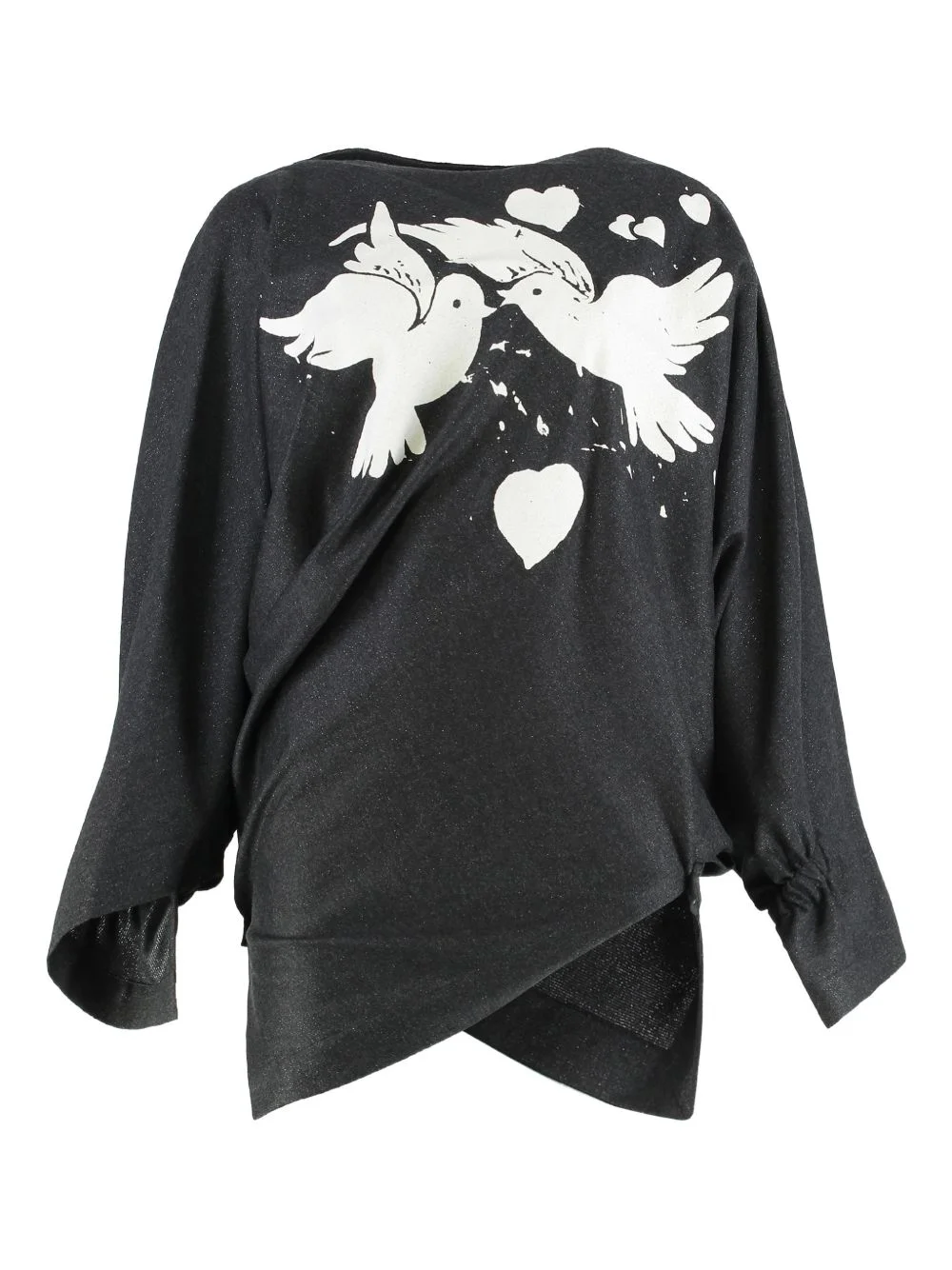 Infinity long-sleeve sweater Highlights - Grey - Dove and heart graphic print - Long sleeves - Gathered cuffs - Asymmetric hem Made in Italy Composition Wool 98%, Polyamide 1%, Metallic Fibre 1% Washing instructions Read Manufacturer Guidelines