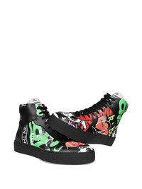 leather high-top sneakers Highlights - Black - Leather upper - Graphic print - Round toe - High-top design - Flat rubber-sole Made in Italy Composition Outer: Calf Leather 100% Sole: Rubber 100% Lining: Calf Leather 100%