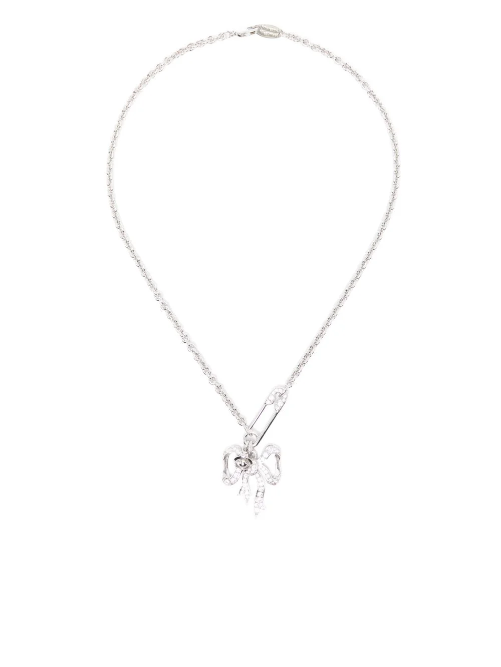 Lilith Pendant necklace Highlights - Silver-tone - Bow detail - Chain link - Lobster clasp fastening Imported SIZE & FIT Measurement Length when open 15.74 in(40 cm) PENDANT LENGTH 1.18 in(3 cm) PENDANT WIDTH 0.78 in(2 cm) WIDTH 0.07 in(0.2 cm)