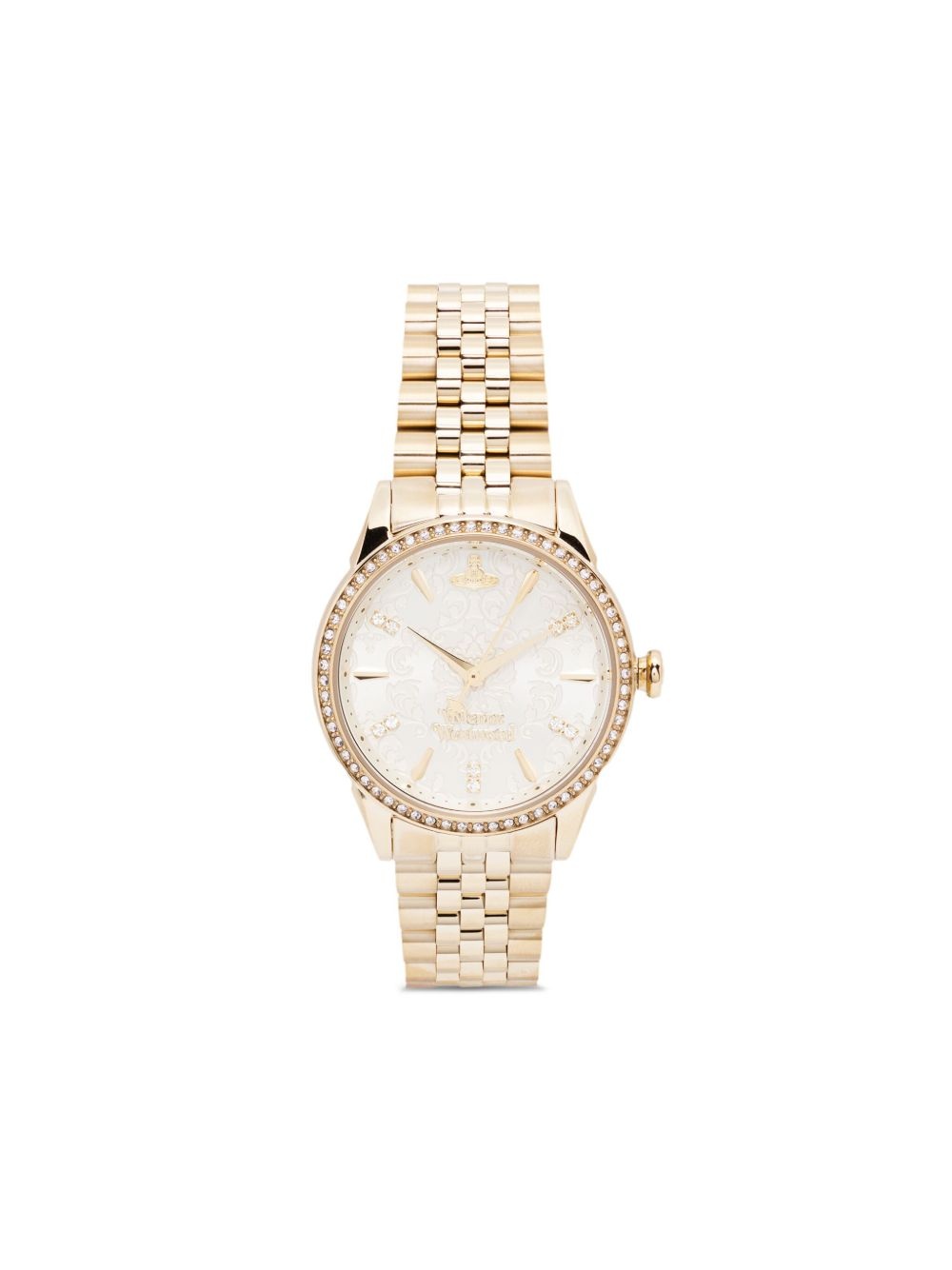 Little Wallace 32mm Highlights - 32mm - Stainless steel case - Quartz movement - Round face - Gold-tone - Index dial - Crystal dial - Index hands - Crystal-encrusted bezel - Screw-down crown - Stainless steel link bracelet - Clasp fastening - Water resistance up to 50m/5 atm - This item comes with a standard one-year warranty from the boutique. Imported SIZE & FIT Model measurements Height 5 ft 10 in(1.79 m) Bust/Chest 33.07 in(84 cm) Hips 35.82 in(91 cm) Waist 24.01 in(61 cm) Measurement CIRCUMFERENCE 7.24 in(18.4 cm) DIAMETER 1.25 in(3.2 cm) Thickness 0.47 in(1.2 cm) WIDTH 0.62 in(1.6 cm)
