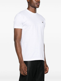 logo-embroidered cotton T-shirt First designed in 1986, Vivienne Westwood's iconic Orb logo punctuates the chest of this white cotton T-shirt. Highlights - White - Cotton - Crew neck - Signature orb logo embroidery - Short sleeves - Straight hem - When buying this unisex item, keep in mind that it is graded in standard men's sizing. Imported Composition Cotton 100% SIZE & FIT Model measurements Height 6 ft 2 in(1.89 m) Bust/Chest 39.76 in(101 cm) Hips 37.4 in(95 cm) Waist 29.92 in(76 cm) Measurement CHEST 38.58 in(98 cm) SLEEVE LENGTH 7.08 in(18 cm) LENGTH 26.77 in(68 cm) Shoulder Width 17.71 in(45 cm) FittingInformation Designed for a regular fit allowing for a comfortably loose fit throughout the body Made from a midweight non-stretch fabric, this piece offers minimal elasticity when worn This piece fits true to size – take your usual size Washing instructions Machine Wash