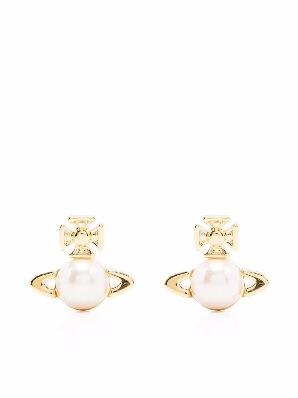 logo faux-pearl earrings Highlights - Gold/cream - Brass - Signature orb plaque detail - Faux-pearl embellishment - Stud design - Butterfly fastening - For pierced ears - Two's company. these earrings come as a pair. Imported SIZE & FIT Model measurements Height 5 ft 10 in(1.78 m) Bust/Chest 31.49 in(80 cm) Hips 36.22 in(92 cm) Waist 25.59 in(65 cm) Measurement HEIGHT 0.39 in(1 cm) WIDTH 0.43 in(1.1 cm)