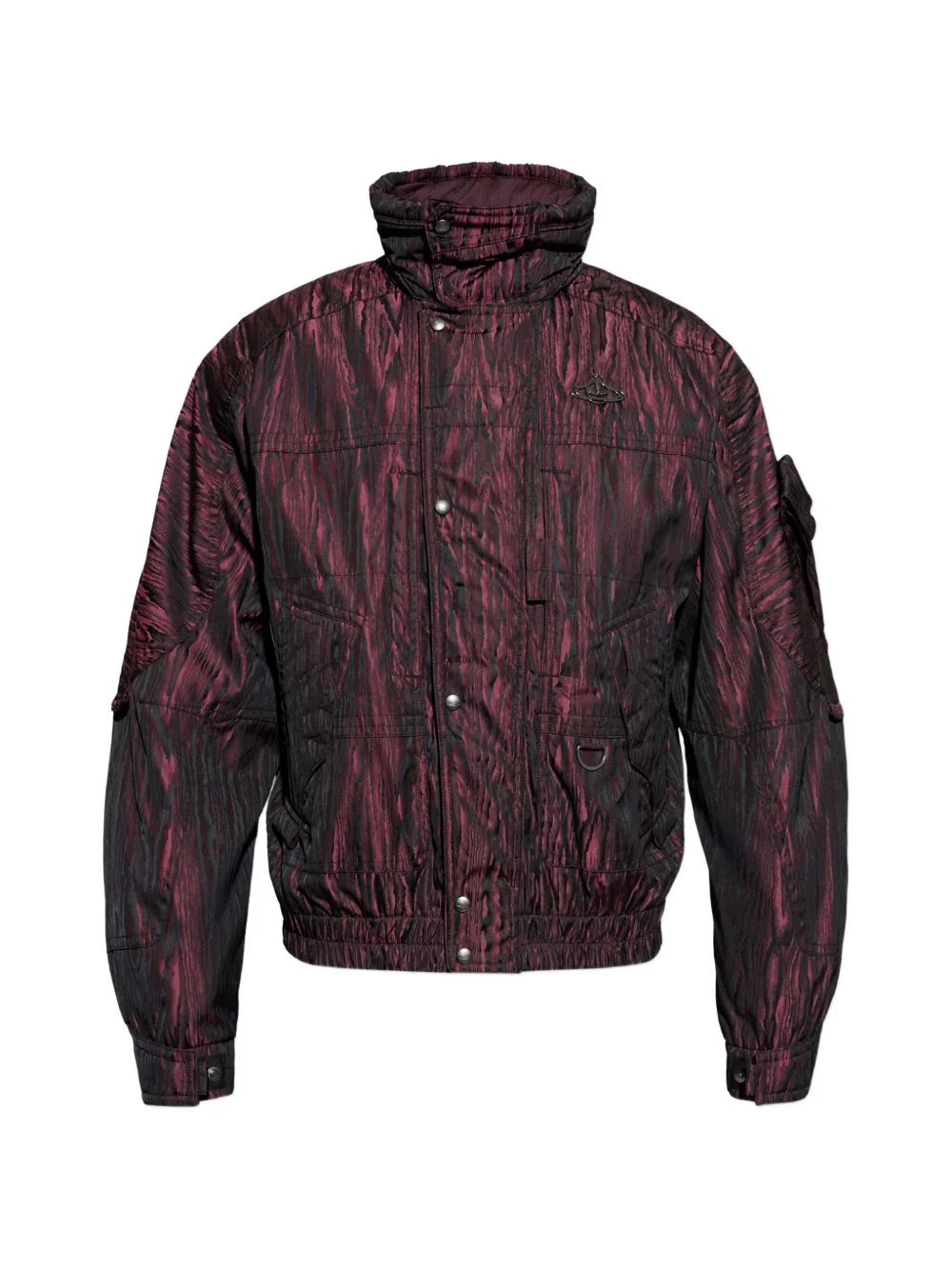long-sleeve buttoned jacket Highlights - Red - All-over graphic pattern - Stand-up collar - Chest logo detail - Chest pockets - Press-stud fastening Imported Composition Polyester 100% Washing instructions Read Manufacturer Guidelines