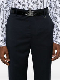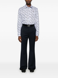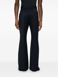 M Ray trousers Highlights - Navy blue - Virgin wool - Flared design - Belt loops - Pressed crease - Two diagonal pockets to the sides - Rear button-fastening pocket - Concealed front button, hook and zip fastening Made in Italy Composition Lining: Viscose 100%, Cotton 100% Outer: Virgin Wool 100% SIZE & FIT Model measurements Height 6 ft 2 in(1.88 m) Bust/Chest 36.61 in(93 cm) Hips 35.82 in(91 cm) Waist 27.95 in(71 cm) FittingInformation Designed with a flared hem, offering a slim fit over the leg, widening towards the hem The unfinished hems allow for the length to be altered Made from a midweight non-stretch fabric This piece fits true to size – take your usual size