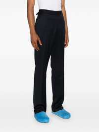 mid-rise tailored trousers Highlights - Midnight blue - Virgin wool - Cotton - Mid-rise - Belt loops - Concealed front button, hook and zip fastening - Side buckle-straps fastening - Two side slash pockets - Rear button-fastening jetted pocket - Straight leg - Tailored cut Made in Italy Composition Lining: Viscose 100%, Cotton 100% Outer: Virgin Wool 100% SIZE & FIT Model measurements Height 6 ft 2 in(1.89 m) Bust/Chest 36.22 in(92 cm) Hips 35.82 in(91 cm) Waist 28.54 in(72.5 cm) FittingInformation Designed for a straight-leg, allowing for an unrestricted and comfortable fit over the leg The adjustable tabs allow for fitted preferences Made from a midweight non-stretch fabric This piece fits true to size – take your usual size