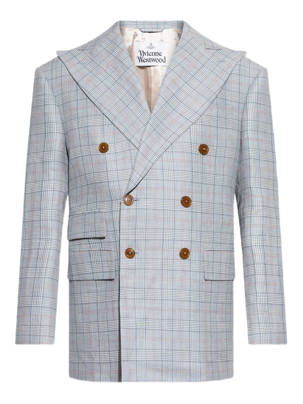 Niesen double-breasted checked blazer Highlights - Light grey - Checked design - Peaked lapels - Front button fastening - Three front flap pockets Made in Italy Composition Linen/Flax 50%, Wool 50%