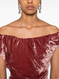 off-shoulder velvet midi dress Highlights - Red - Velvet texture - Off-shoulder neckline - Fitted silhouette - Midi length Made in Italy Composition Lining: Acetate 50%, Viscose 50% Outer: Viscose 71%, Silk 29% SIZE & FIT Model measurements Height 5 ft 10 in(1.77 m) Bust/Chest 33.07 in(84 cm) Hips 37 in(94 cm) Waist 24.8 in(63 cm) FittingInformation Designed for a slim fit that sits just away from the body offering a close yet comfortable fit Made from a midweight non-stretch fabric Washing instructions Dry Clean Only