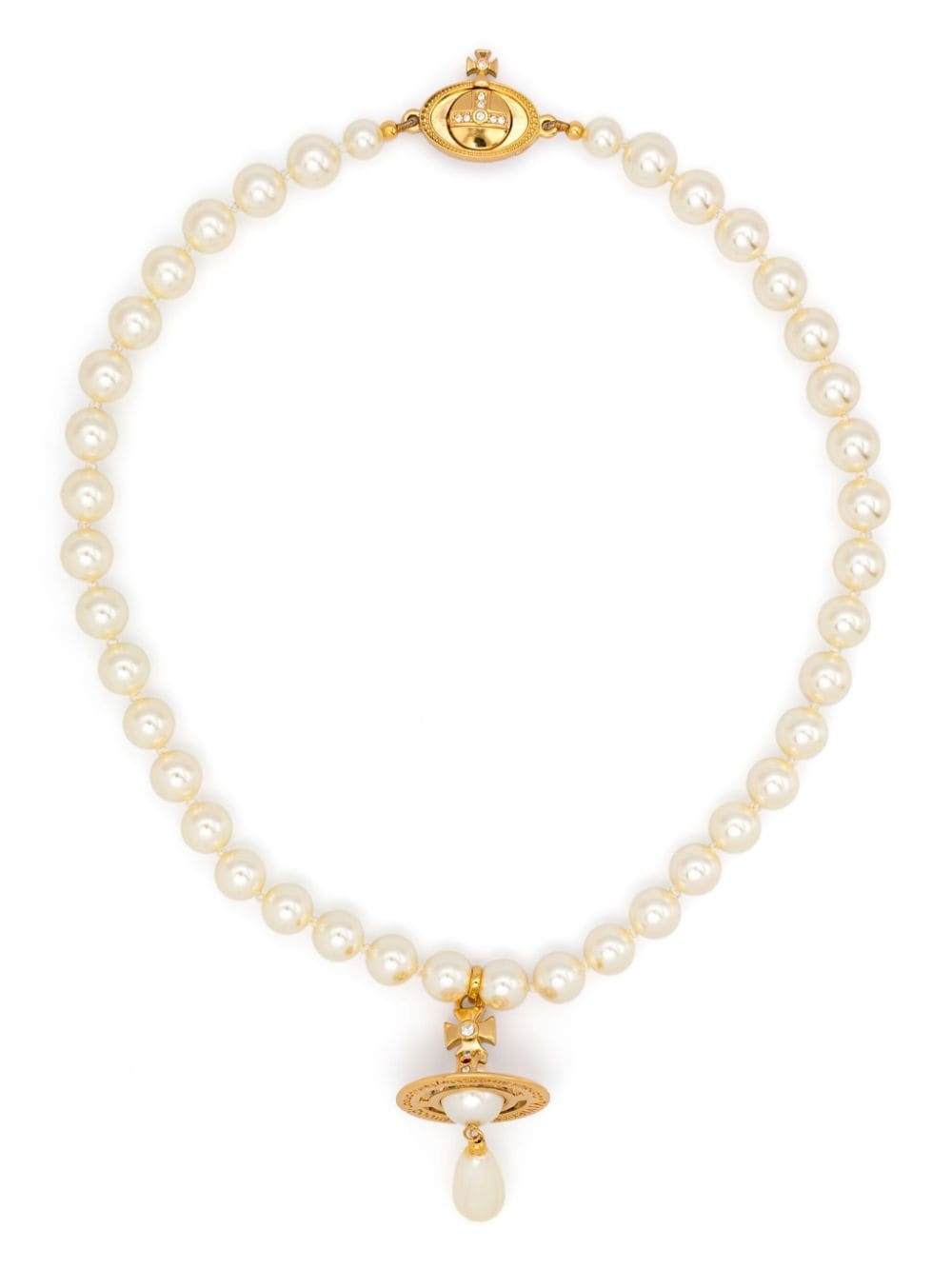One Row Pearl Drop choker Highlights - Gold-tone/white - Pearlescent finish/polished finish - Faux-pearl embellishment - Crystal signature orb logo pendant - Toggle fastening - Length: 37cm - This piece comes complete with a protective dust bag. Imported SIZE & FIT Model measurements Height 5 ft 9 in(1.75 m) Bust/Chest 31.88 in(81 cm) Hips 34.64 in(88 cm) Waist 24.01 in(61 cm) Measurement Length when open 15.74 in(40 cm) PENDANT LENGTH 1.96 in(5 cm) PENDANT WIDTH 0.94 in(2.4 cm) WIDTH 0.31 in(0.8 cm)
