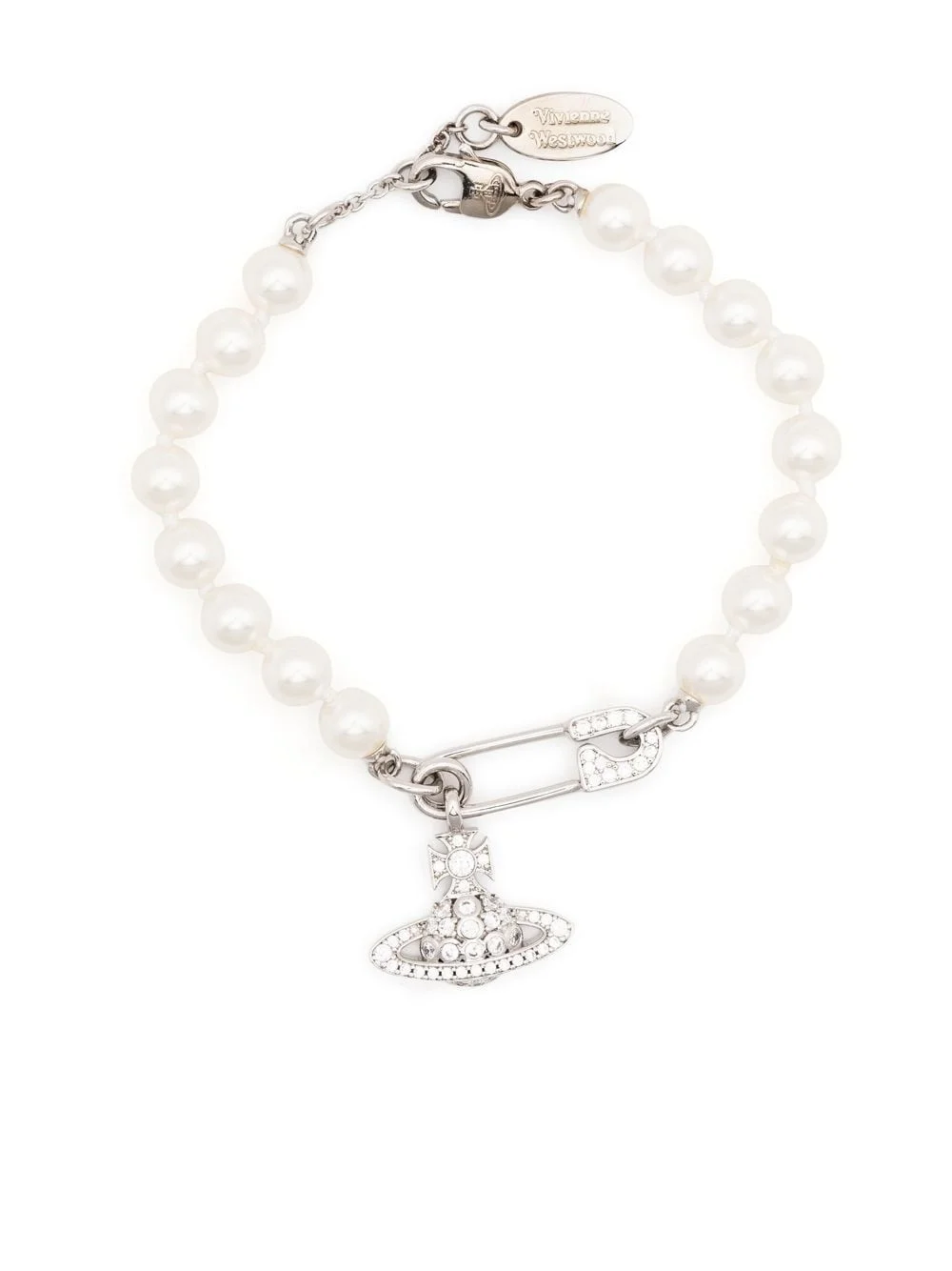 Orb-detail bead bracelet Highlights - Platinum - Brass/plastic - Silver-tone hardware - Glass crystal embellishment - Faux-pearl detailing - Signature orb plaque detail Imported SIZE & FIT Measurement PENDANT LENGTH 0.9 in(2.3 cm) PENDANT WIDTH 0.7 in(1.8 cm) TOTAL LENGTH 7.08 in(18 cm) WIDTH 0.23 in(0.6 cm)