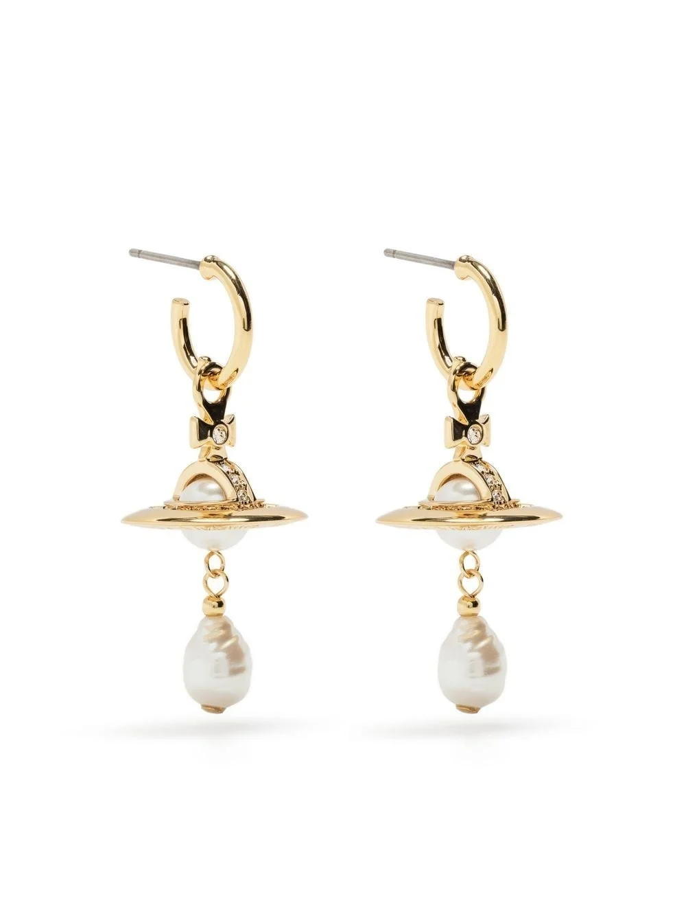 Orb drop earrings Highlights - Gold-tone - Pearl detail - Drop design - Butterfly fastening - Sold in pairs. Imported SIZE & FIT Model measurements Height 5 ft 10 in(1.77 m) Bust/Chest 31.49 in(80 cm) Hips 35.43 in(90 cm) Waist 25.19 in(64 cm) Measurement HEIGHT 1.57 in(4 cm) Weight (single earring) 3.1 g(3.1 g) WIDTH 0.39 in(1 cm)