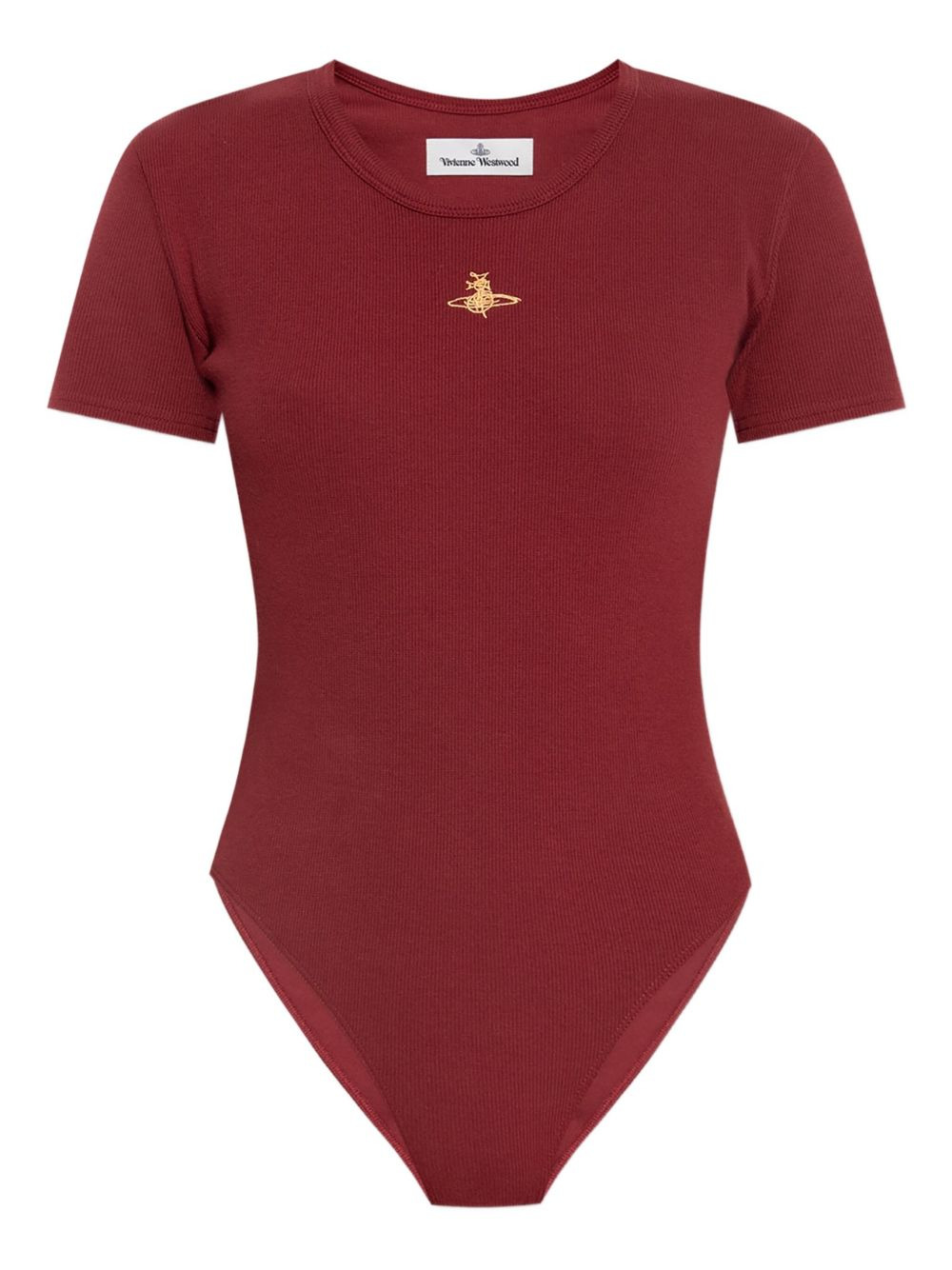 Orb-embellished ribbed bodysuit Highlights - Dark red - Ribbed texture - Short sleeves - Round neck - Close-fitting - Signature orb emblem Imported Composition Organic Cotton 95%, Elastane 5% Washing instructions Read Manufacturer Guidelines