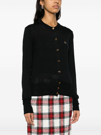 Orb-embroidered cardigan Highlights - Black - Merino wool- silk blend - Fine knit - Crew neck - Signature orb logo embroidery to the chest - Long sleeves - Ribbed cuffs and hem - Front button fastening Made in Italy Composition Merino 70%, Silk 30% SIZE & FIT Model measurements Height 5 ft 9 in(1.76 m) Bust/Chest 31.88 in(81 cm) Hips 35.43 in(90 cm) Waist 22.44 in(57 cm) FittingInformation Designed for a slim fit that sits just away from the body offering a close yet comfortable fit The ribbed hem offers a close, comfortable fit Made with a lightweight knit, this piece offers some stretch This piece fits true to size – take your usual size Measurement SLEEVE LENGTH 24.4 in(62 cm) LENGTH 24.4 in(62 cm) BUST 42.51 in(108 cm) Shoulder Width 16.14 in(41 cm) Washing instructions Hand Wash