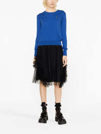 Orb-embroidered cotton-cashmere jumper A steadfast house emblem since the late 80s, Vivienne Westwood's iconic Orb logo honours the past and future by placing the British Sovereign’s globe in the centre of Saturn’s orbiting rings. The motif sits at the chest of cotton and cashmere-blend jumper in a signature stamp of identity. Highlights - Cobalt blue - Cotton-cashmere blend - Fine knit - Crew neck - Signature orb logo embroidery - Long sleeves - Ribbed cuffs and hem - Straight hem Made in Italy Composition Cotton 85%, Cashmere 15% SIZE & FIT Model measurements Height 5 ft 10 in(1.79 m) Bust/Chest 31.49 in(80 cm) Hips 35.03 in(89 cm) Waist 23.62 in(60 cm) FittingInformation Designed to be unstructured, offering a loose fit throughout Made with a midweight knit, this piece offers some stretch This piece fits true to size – take your usual size Washing instructions Hand Wash