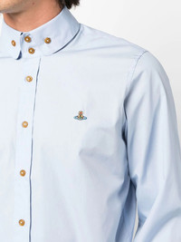 orb-embroidered organic-cotton shirt Highlights - Light blue - Organic cotton - Signature orb logo embroidery - Button-down collar - Front button fastening - Long sleeves - Buttoned cuffs - Curved hem Imported Composition Organic Cotton 100% Washing instructions Machine Wash