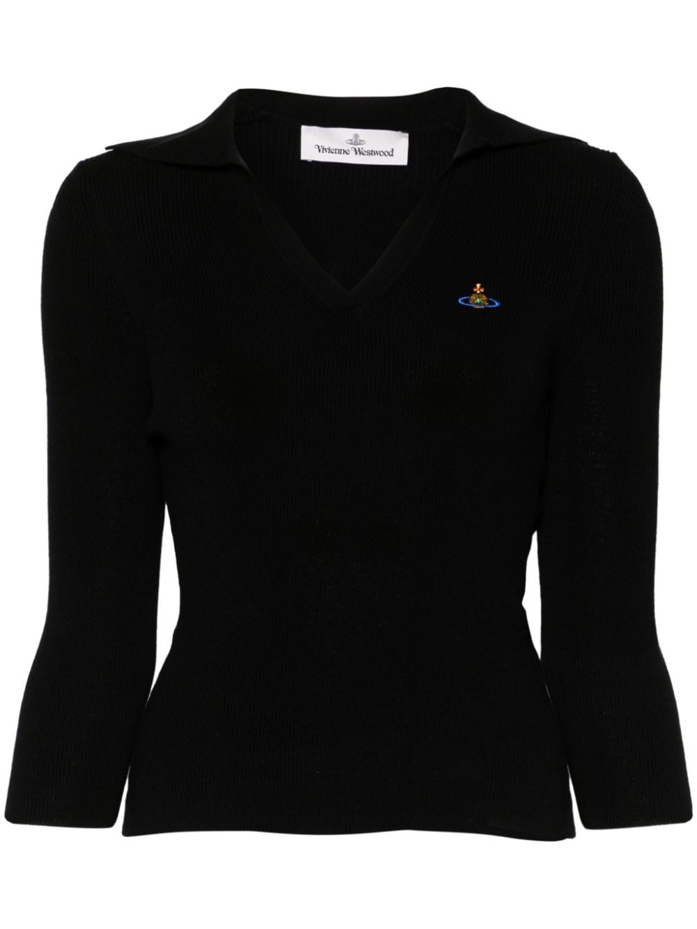 Orb-embroidered polo jumper Highlights - Black/multicolour - Organic cotton-cashmere blend - Fine knit - Signature orb logo embroidery - Polo collar - Split neck - Long sleeves - Straight hem Made in Italy Composition Organic Cotton 85%, Cashmere 15% SIZE & FIT Model measurements Height 5 ft 9 in(1.75 m) Bust/Chest 34.64 in(88 cm) Hips 36.61 in(93 cm) Waist 26.37 in(67 cm) FittingInformation Designed for a close fit throughout Made with a midweight knit, this piece offers some stretch This piece fits true to size – take your usual size