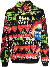 Orb graphic-print jersey hoodie Highlights - Black/multicolour - Organic cotton blend - Jersey texture - All-over graphic print - Signature orb logo print - Slouchy hood - Drop shoulder - Long sleeves - Front pouch pocket - Ribbed cuffs and hem Imported Composition Polyamide 55%, Organic Cotton 45% SIZE & FIT Model measurements Height 5 ft 10 in(1.78 m) Bust/Chest 30.7 in(78 cm) Hips 36.22 in(92 cm) Waist 25.59 in(65 cm) FittingInformation This unisex piece is designed for a relaxed fit whether you usually select women's or men's sizes Made from a midweight non-stretch fabric, this piece offers minimal elasticity when worn Washing instructions Machine Wash