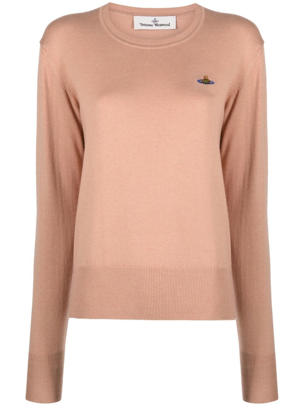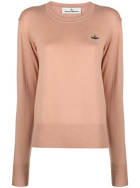 Orb-embroidered crew-neck jumper Vivienne Westwood's signature Orb logo reflects the label's fascination with the past and the future. The iconic motif features the British monarchy emblems to illustrate the brand's heritage and the past, accompanied by the rings of Saturn to represent the future. Here, the signature logo takes the central focus of this jumper, adding an instantly recognisable touch to a classic silhouette. Highlights - Blush beige - Cotton-cashmere blend - Fine knit - Signature orb logo embroidery - Crew neck - Long sleeves - Ribbed trim Made in Italy Composition Cotton 85%, Cashmere 15% SIZE & FIT Model measurements Height 5 ft 10 in(1.77 m) Bust/Chest 31.49 in(80 cm) Hips 33.85 in(86 cm) Waist 22.44 in(57 cm) Measurement BUST 37 in(94 cm) LENGTH 22.44 in(57 cm) SLEEVE LENGTH 24.8 in(63 cm) Shoulder Width 15.74 in(40 cm) FittingInformation This piece fits true to size. We recommend you get your regular size Cut for a relaxed fit Made with a mid-weight fabric