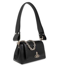 Orb plaque flap shoulder bag