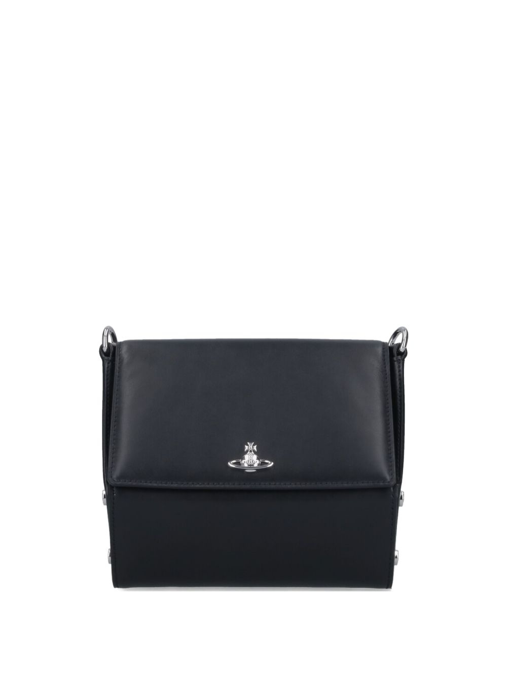 Orb-plaque shoulder bag Highlights - Black - Foldover top with magnetic fastening - Adjustable detachable shoulder strap - Main compartment - Stud detailing Made in Italy Composition Outer: Calf Leather 100%